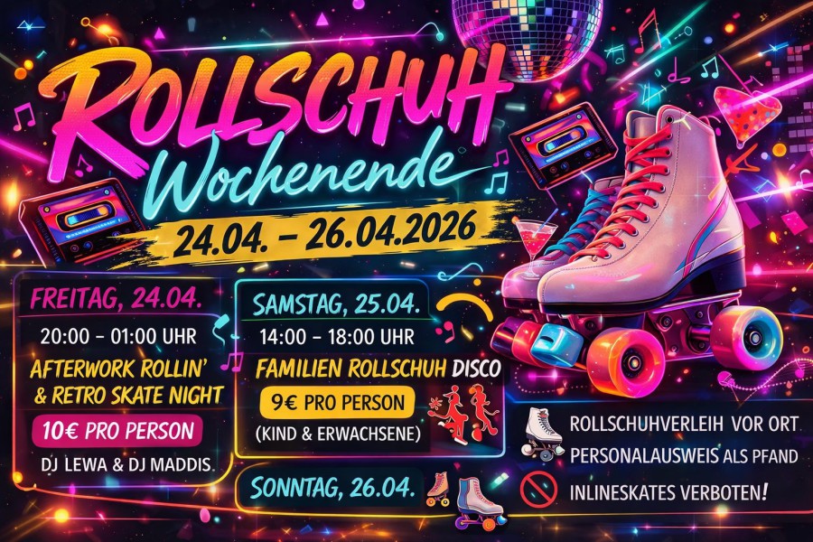 Ein besonderes Event, bei dem Rollschuhfahren, Musik und Party zusammenkommen.