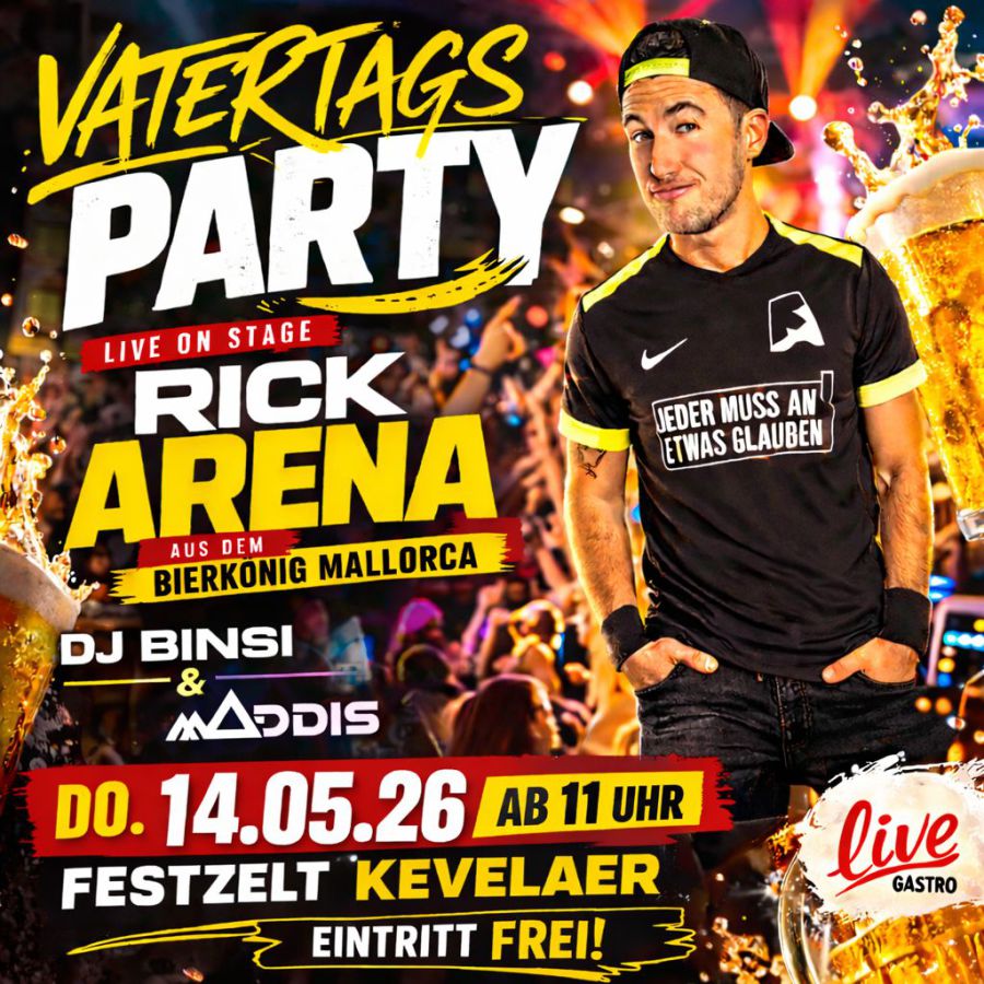 Am Vatertag findet im Festzelt in Kevelaer eine große Partyveranstaltung statt. Neben Live-Act Rick Arena und weiteren Künstlern begleite ich den Tag musikalisch als DJ.